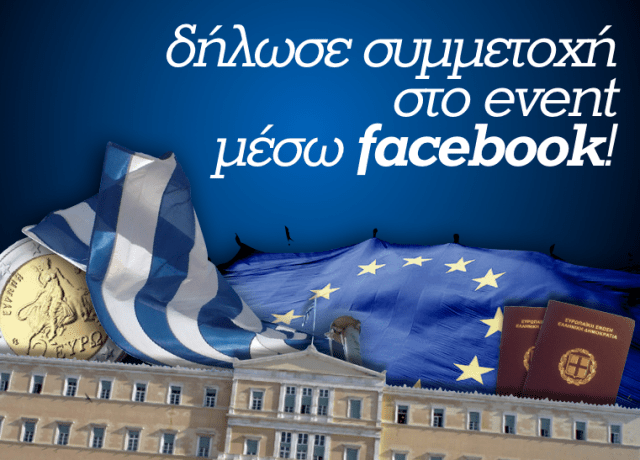 Με συγκέντρωση στο Σύνταγμα και πορεία προς το Ζάππειο την Κυριακή 10 Ιουνίου 2012 στις 19.00 εκφράζουμε την βούληση μας να συνεχίσει η χώρα την Ευρωπαϊκή της πορεία, ως ισότιμο μέλος της Ευρωπαϊκής Ένωσης και της Ευρωζώνης.